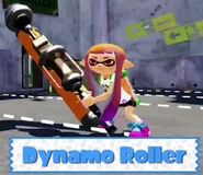 | “ | The Dynamo Roller has a low swing speed and roll speed, but a higher damage output and ink splatter range. This roller is very useful when you have a height advantage over your opponents, standing over a Splat Zone for example. Just raining ink down with your swing can easily capture the zone. The Sprinkler can be used as a distraction for opponents, and Echolocator helps you keep tabs on your opponents so you’re not snuck up on—which can be bad due to the slow attack speed of a Dynamo Roller. | ” |