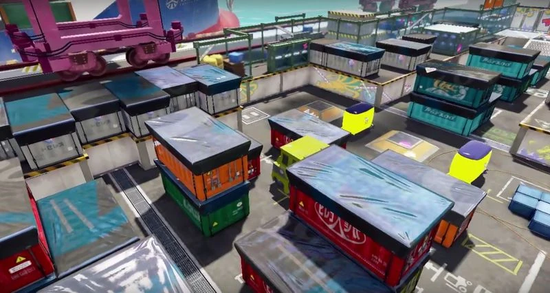 Der Heilbutt-Hafen ist eine recht einfach aufgebaute Arena. Typisch für einen Containerhafen gibt es hier viele Container und Kisten. Zwei Bereiche sind jedoch nicht so sehr vollgestellt und eignen sich daher für großflächiges Einfärben. In der Mitte der Arena fahren zwei Gabelstapler hin und her.