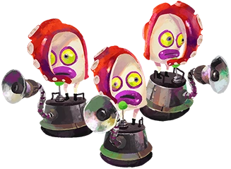 Die Oktoschergen sind hochentwickelte Oktarianer-Soldaten, die durchschlagskräftiger sind als die normalen Oktorekruten. Diese Kerle benutzen ein Tentakel, um ihr kleines Joystick-Gerät zu bedienen, und das andere, um auf den Tintenabschussknopf zu hämmern.[2]