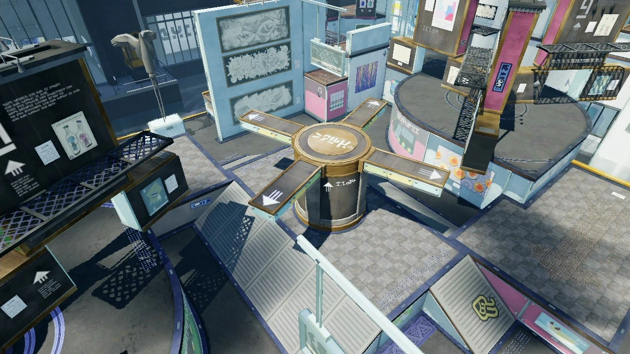 Die Pinakoithek ist ein Museum, in der sich fünf drehende Plattformen befinden. Die erste ist gleich am Start, einige Meter weiter vorne ist die zweite und in der Mitte die dritte. Die letzten zwei Plattformen befinden sich wieder auf der gegnerischen Seite. Die Mitte der Arena ist offen und bietet wenige Verstecke. Achtet man mehr auf den Hintergrund, sieht man auch einige Kunstwerke, die im Museum ausgestellt werden. Außerdem sind die Spawn-Plattformen in anderen Spielmodi anders positioniert als im Standardkampf.