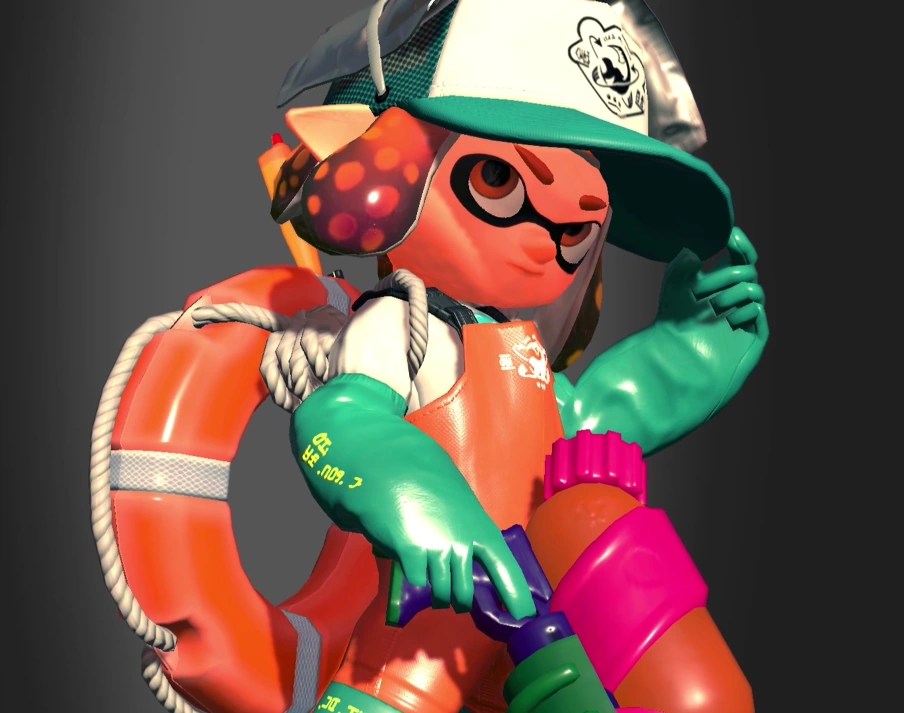 Ein Inkling in spezieller Ausrüstung der Bär GmbH für einen Salmon Run.