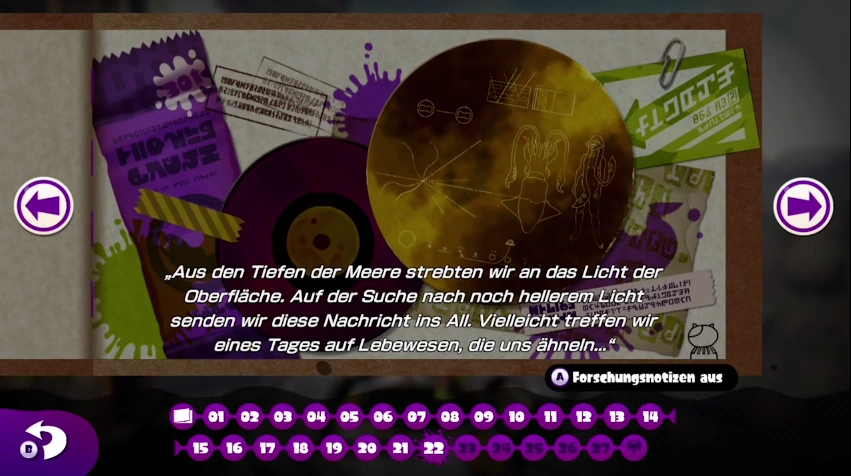 - Fundort:Im fortgeschrittenem Levelverlauf kommt ein Schwamm auf einem Gitter, hat dieser seine volle Größe erreicht kommt man nicht mehr als Tintenfisch durchs Gitter hindurch! Unter dem Gitter befindet sich die Schriftrolle (wie immer) in einer Kiste.