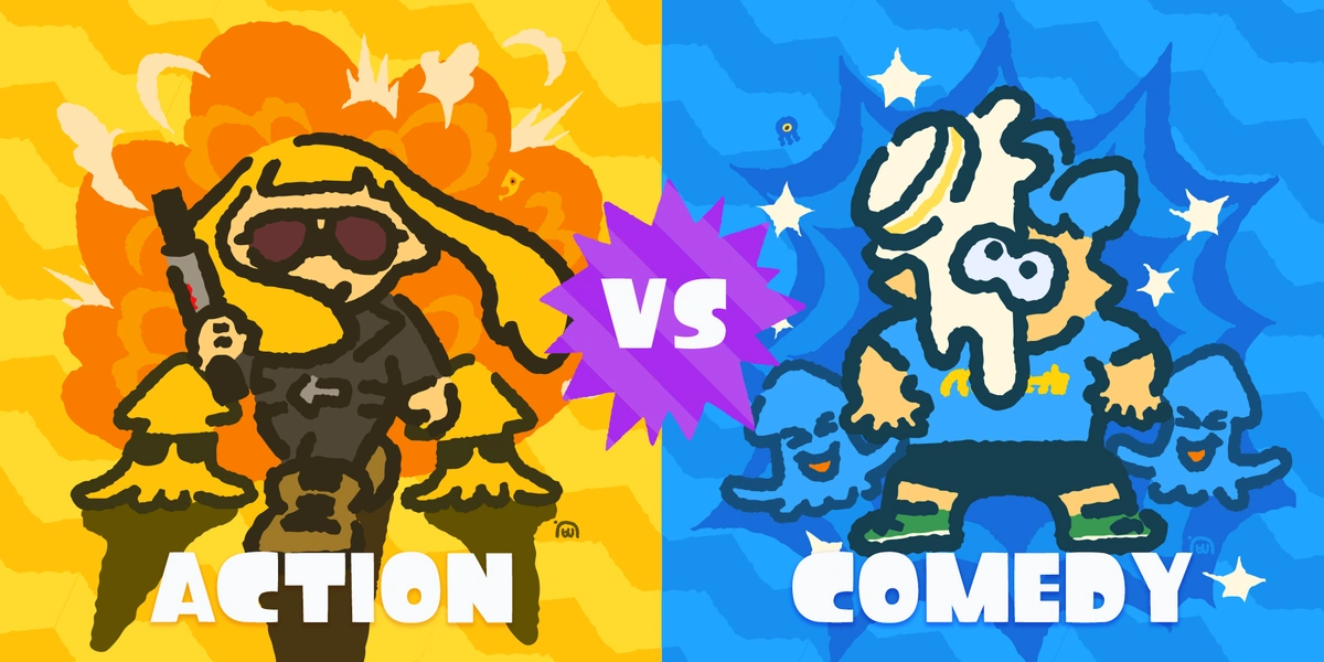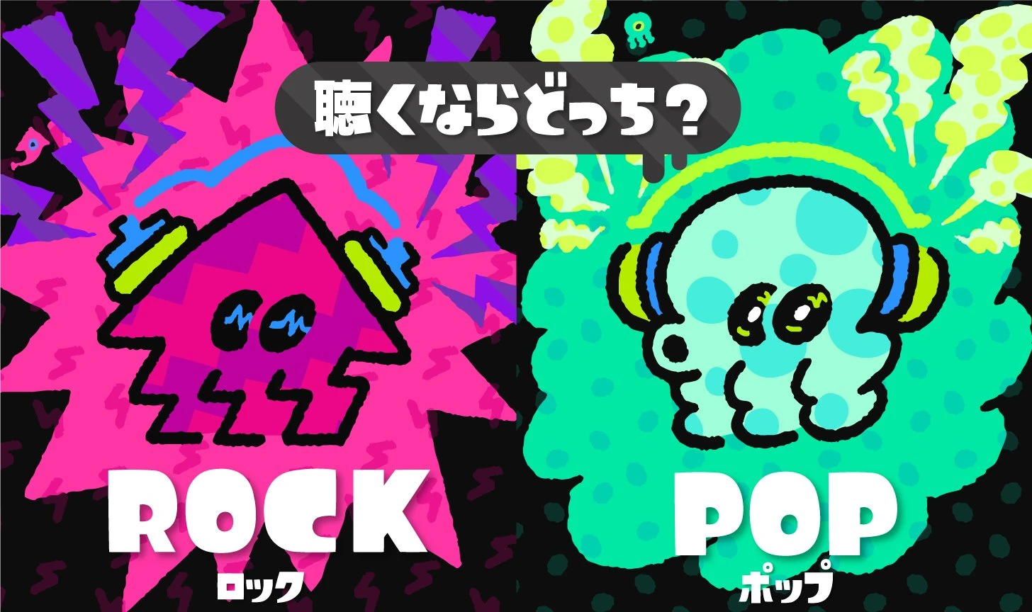 Bist du für Rock oder Pop? – Artwork zum ersten europäischen Splatfest.