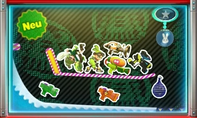In diesem Spiel kann der Tentatek-Kleckser für drei Camping-Coupons nach dem registrieren einer Splatoon-Amiibo Figur, mit Ausnahme der beiden Figuren der Sea Sirens erworben werden.