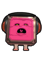 The Octostamps are cubes with a sponge-like face, covered in purple ink. On their backsides, there is a tentacle, like the Mighty Octostomp, and other bosses, excluding DJ Octavio. Note that the tentacles have some sort of thick piece of tape on it, making them require extra hits to splat. They also are wearing red headphones, that covers their ears (if they have any), which also is a good way to tell if its an Octostamp, or an Amped one. They are very small and thin. Unlike the Mighty Octostomp, their face is completely black except for their eyes, which have glowing white pupils. They also have white legs, and black boots.