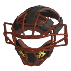 Away-Team Catcher is a red and black baseball catcher helmet.