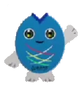 CL-SFT is a cartoonish 2D blue fish with white fins and coloured lines on its stomach. It appears to be a mascot of some kind.