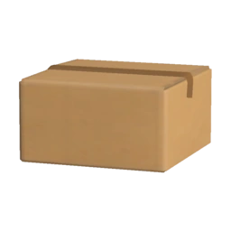 The Cardboard Box is a closed tan cardboard box with tape on the top.