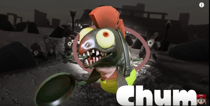 Chums attack by targeting a single player and sliding towards them, attempting to hit them with their frying pan at close range. They can deal a surprising amount of damage for a weak enemy, but they have relatively low health and can be splatted easily. They sometimes spawn in groups, and are often the most common enemy in waves.