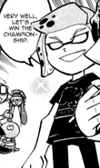 Emperor was pretty cocky, prideful, and strict with his teammates, though he still cares for them. He used to think that fun and enjoyment was only for the winners, but realized he was wrong after losing to Team Blue. Though staying arrogant, he improves his personality during his self-growth trip and battles with Team Blueperor; his arrogance is used as more of a gag and he admits that part of what makes him a “king” is the fact that he can care for and protect his friends in battle. He also becomes less strict over his brother, Prince, and is shown to be very proud of Team Newperor. While he later chose Team Order for the final Splatfest and says that a king’s duty is to protect order, he isn’t completely averse to fun or chaos, and adapts quickly to Goggles’s shenanigans when they’re working together in the Ranked Battle Cup. He frequently refers to himself as the “king”, and often uses more professional or regal language, especially when compared to the other characters.