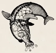 The Flipper-Flopper is a large Boss Salmonid that resembles a giant dolphin. It wears a metal mask with glowing orange- yellow eyes and a gas mask-like front, which according to the Grizzco Industries employee manual is meant to make it more closely resemble a dolphin, which it is implied to idolize.