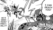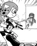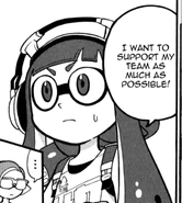 Headphones is down-to-earth and arguably the most reasonable member of Team Blue. She, along with Specs, seems to be a worrywart that is easily intimidated, trembling and crying when up against scary & stronger opponents. Despite that, she's picked up her confidence and has a much more determined outlook when it comes to battles. Her team is her top priority; she mainly uses chargers to watch over her teammates and does what she can to ensure Goggles stays out of trouble. When preparing for the fight against Emperor's Team, Headphones debated whether she should use a scoped charger instead of her usual weapon. Skull and Half-Rim, both scoped-charger users themselves, said she need not to change; her weapon suits her, it's designed for watching over a team, rather than only looking at your targets.