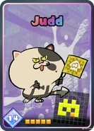 Judd (Japanese: ジャッジくん Jajji-kun / Judge-kun) is a cat in Splatoon, Splatoon 2, and Splatoon 3. Unlike other characters, he seems to play a role in Splatoon's story that remains a mystery. In multiplayer, he plays the role of referee in Turf Wars. In Splatoon, when he's done judging, he can be found sleeping on a trash bin in Inkopolis Plaza. In Splatoon 2, when he's done judging, he can be found sleeping on a cushion near Grizzco Industries, with Lil' Judd on top of him. In Splatoon 3, he rests inside the Lobby on a bench.
