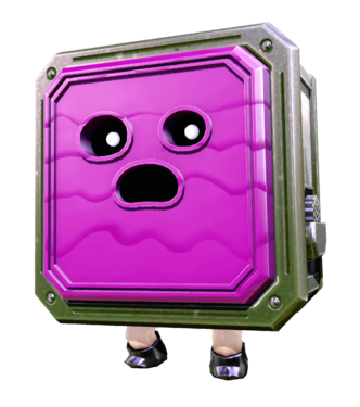 The Octostamps are cubes with a sponge-like face, covered in purple ink. On their backsides, there is a tentacle, like the Mighty Octostomp, and other bosses, excluding DJ Octavio. They are very small and thin. Unlike the Mighty Octostomp, their face is completely black except for their eyes, which have glowing white pupils. They also have white legs, and black boots.