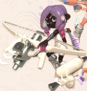 The Order Stringer is similar to the Tri-Stringer but with a different color palette. Having cream white ropes and two cream white ink shooters. With the shooter in the middle being metal. Followed with white recticle-like symbols formed in a circle around the metal ink shooter. The Order Stringer has the same characteristics to the Tri-Stringer with differed stats.