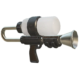 The weapon appears to be based off the Super Soaker 50, one of the first pressurized water guns, due to the similar color, foregrip, and reservoir system.