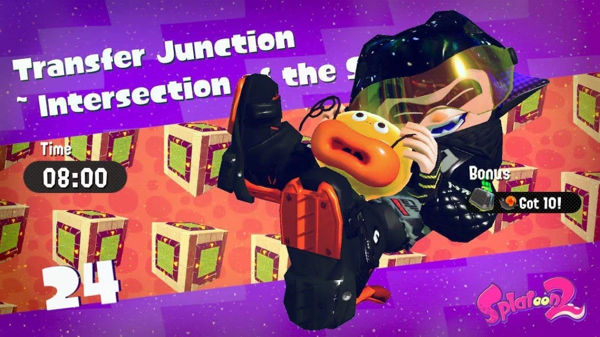 Transfer Junction is the twenty-fourth stage in the Hero Mode of Splatoon 2. The mission can be found in the fifth sector, Cephalon HQ.